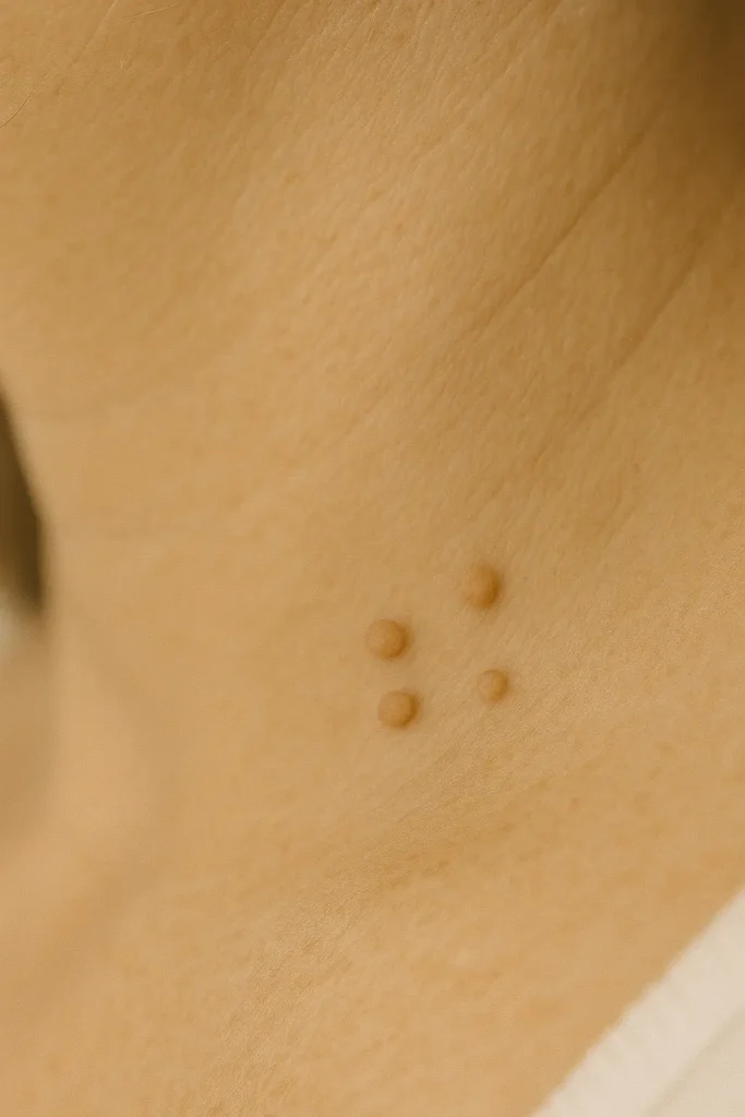 Goedaardige huidverhevenheden zoals steelwratjes, wratjes, bindweefselbultjes of kleine huiduitstulpingen kunnen als storend worden ervaren en het huidbeeld onrustig maken. Verzorgingsproducten hebben hier geen invloed op en kunnen deze plekjes niet veilig of effectief verwijderen.