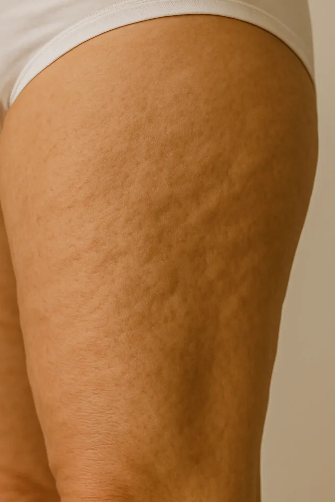 Cellulite heeft niets te maken met gewicht of leefstijl alleen. Het ontstaat doordat de bindweefselstructuur onder de huid verzwakt, de doorbloeding vermindert en vetcellen naar boven drukken. Hierdoor ontstaat dat typische, oneffen reliëf (ook wel sinaasappelhuid) dat vaak als storend wordt ervaren.
